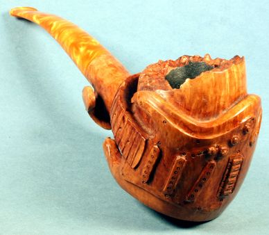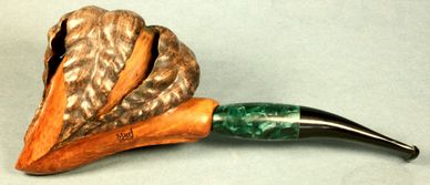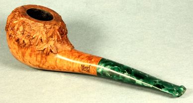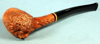 A pipe with fine birds eye grain on the top of the bowl will sit on its left hand.